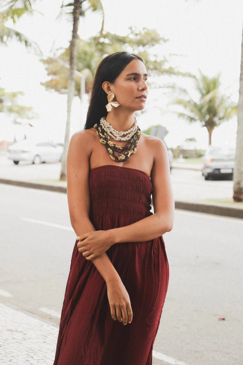 Falda larga bordo con punto elastizado en caderin. Confeccionado en un género súper liviano y fresco. Ideal para combinar con musculosa bordo GR del mismo género.
