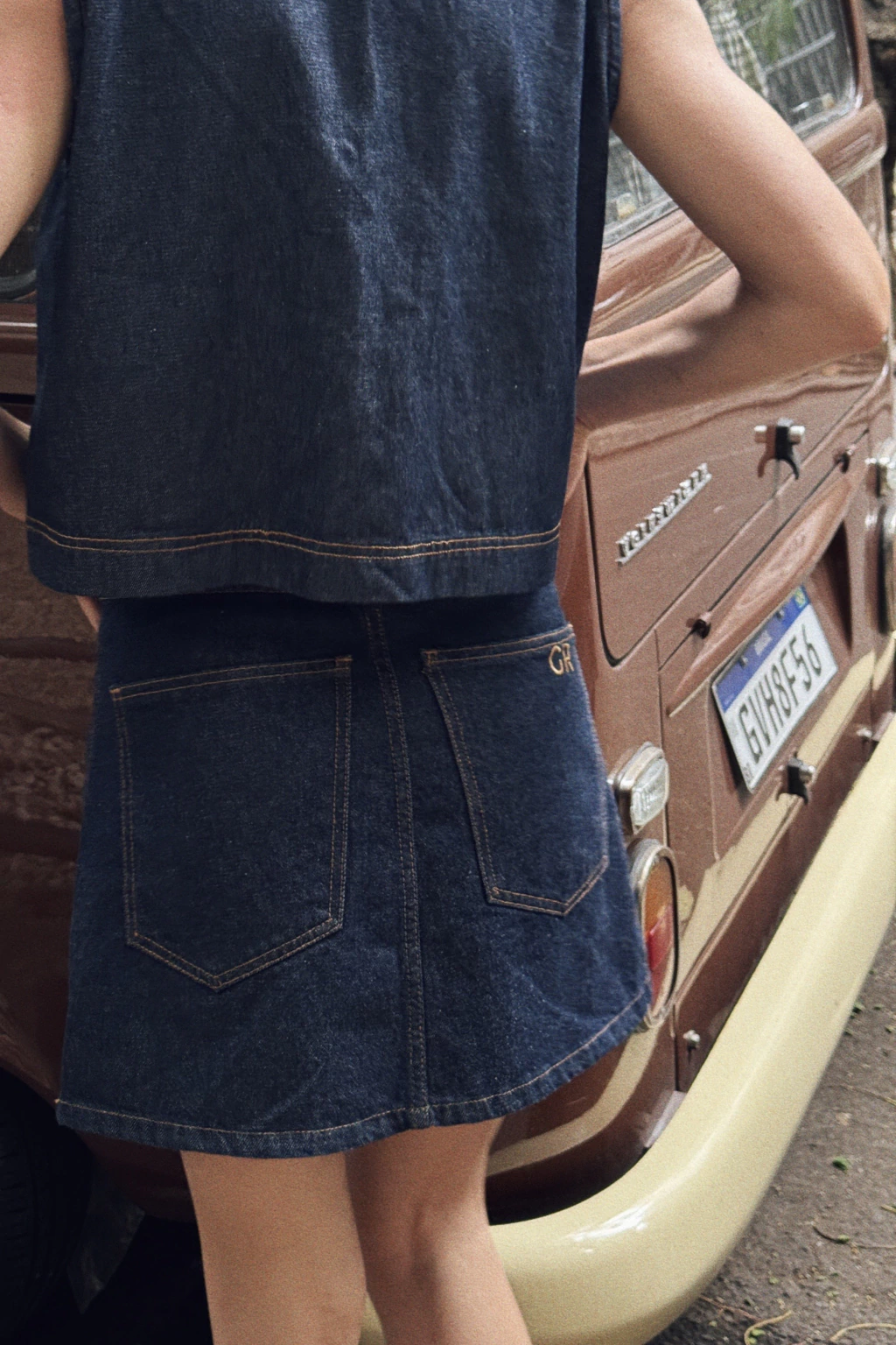 Nueva mini denim en un corte clásico confeccionada en denim grueso 100% algodón con una calidad divina. Una prenda que vas amar tener en tu placard y para usar en cualquier temporada!