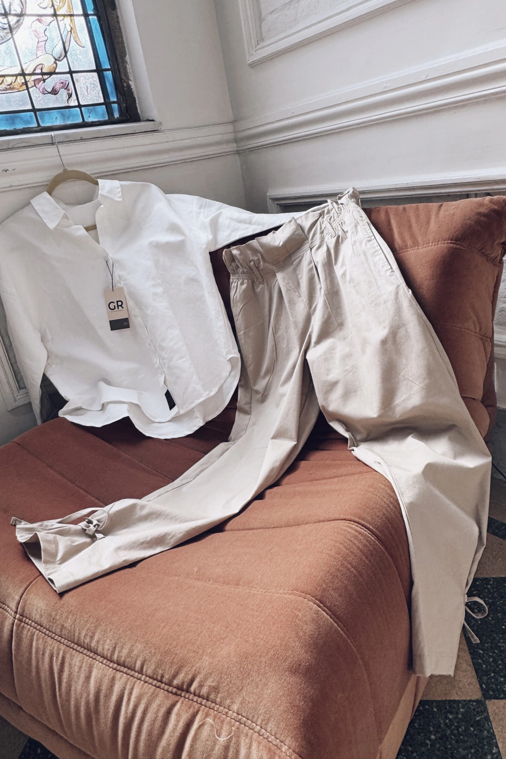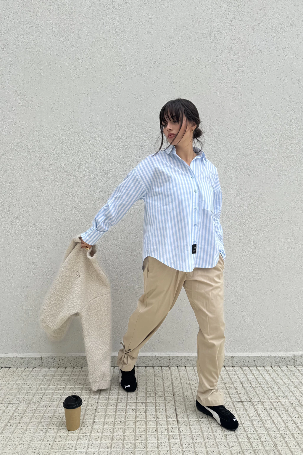 - Cintura con presillas y detalle de volado.