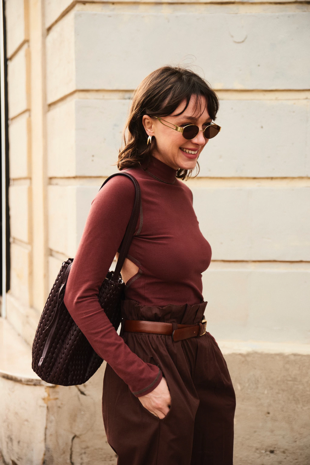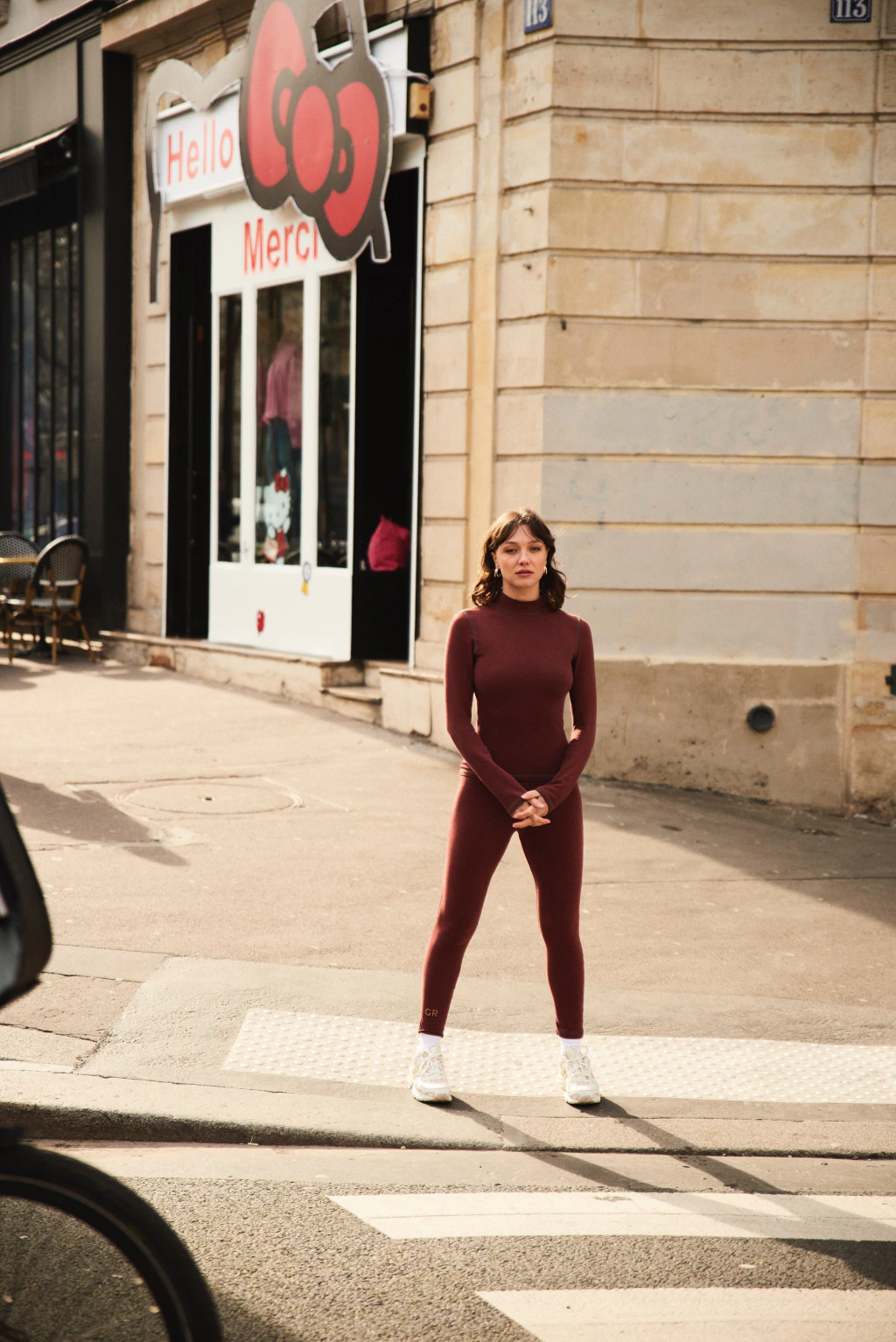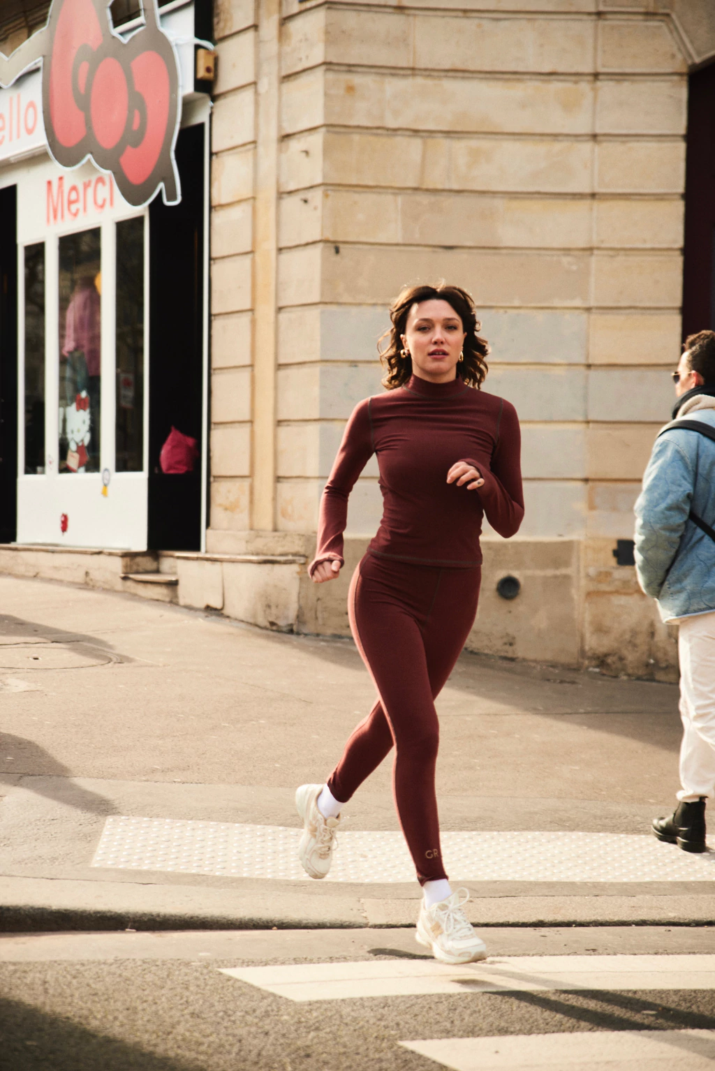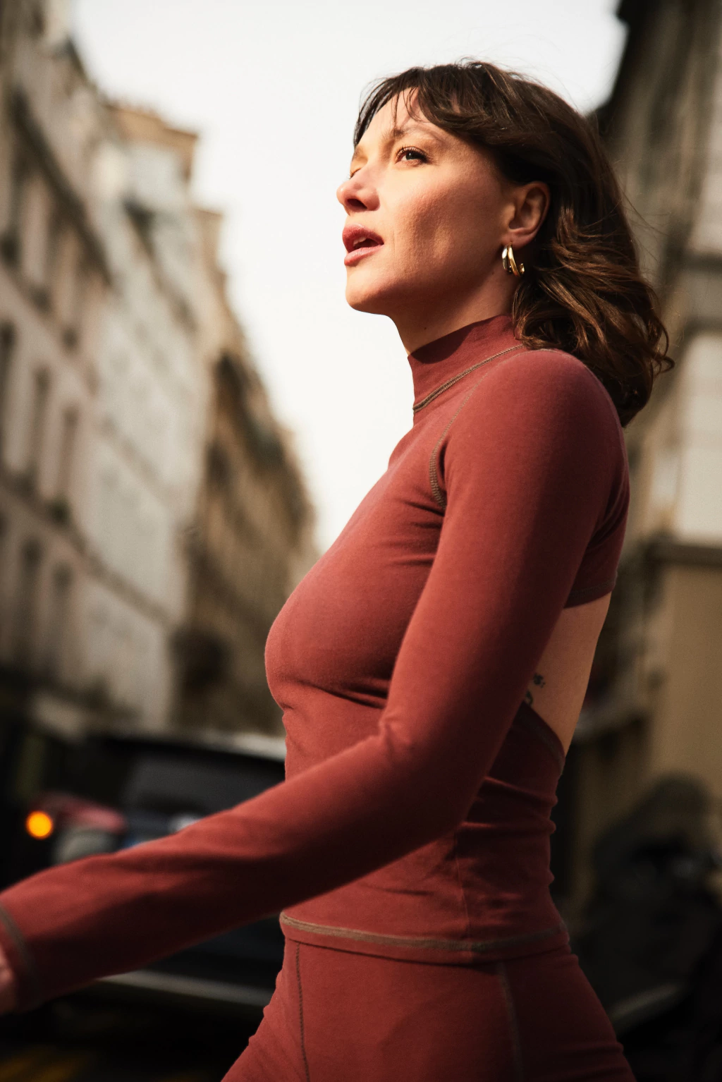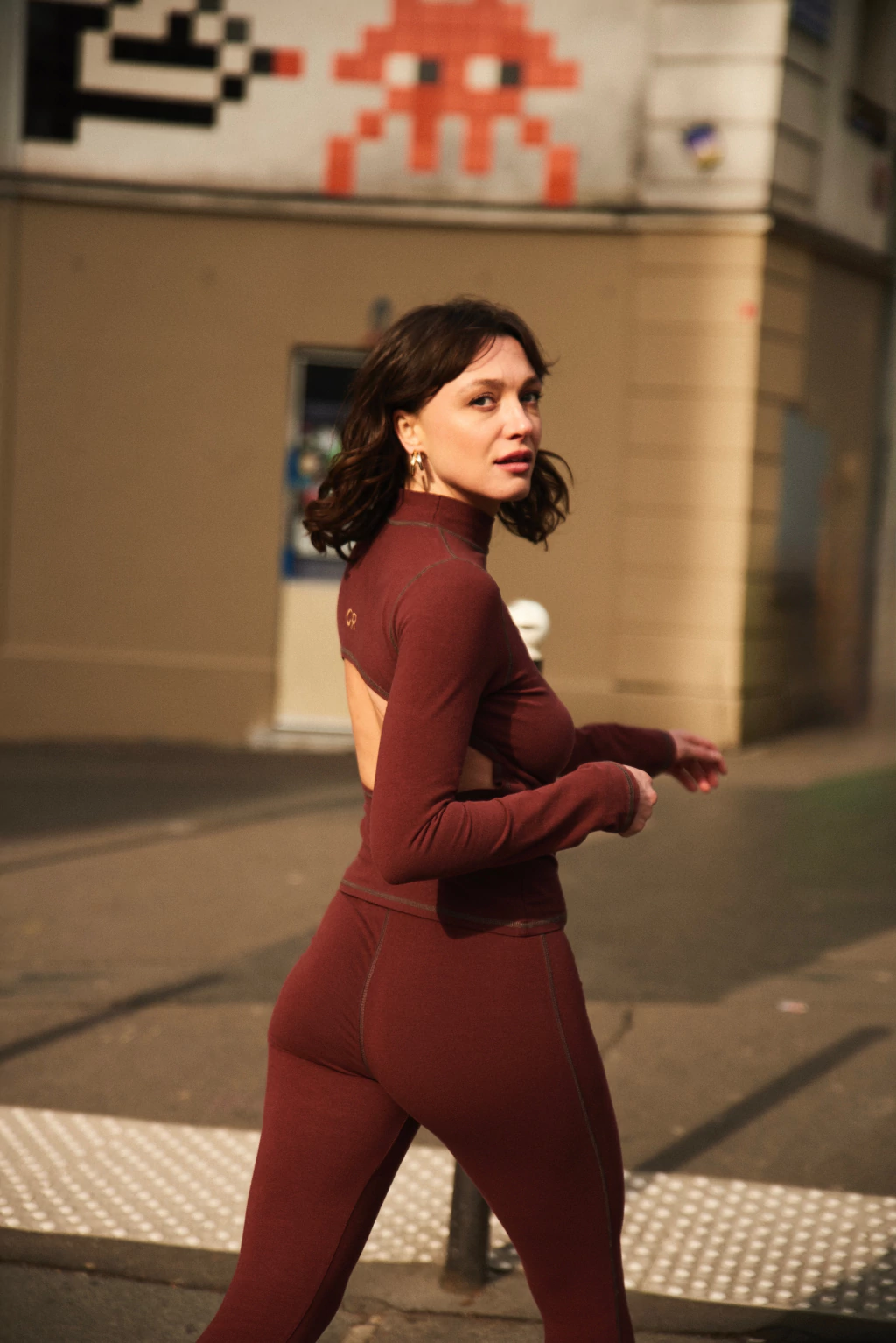 Polera al cuerpo con abertura en espalda ideal para uso urbano y deportivo.