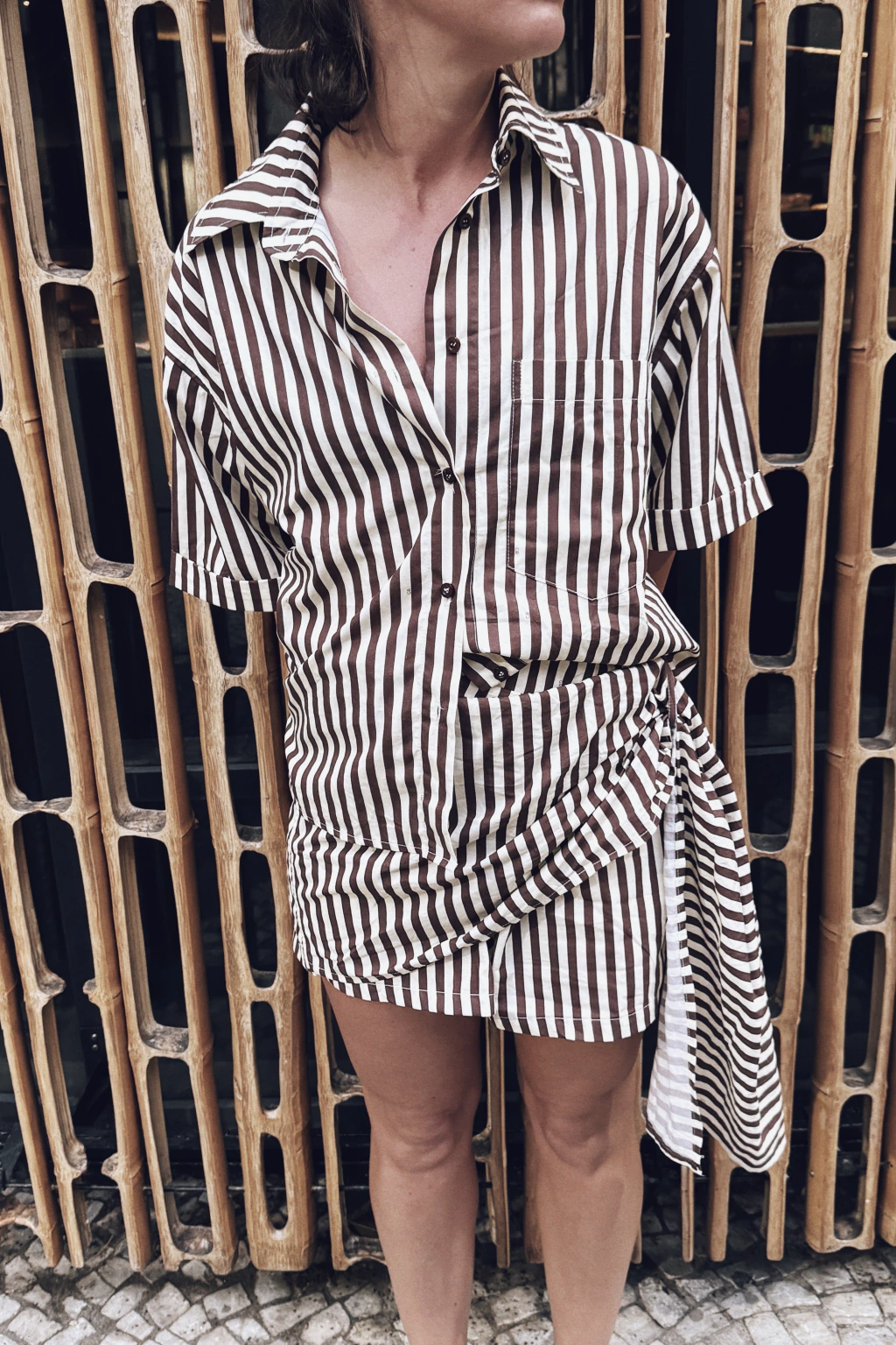 Para las amantes de nuestras camisas rayadas, ahora hicimos esta versión manga corta. Confeccionada en poplin rayado con logos GR de una calidad hermosa.