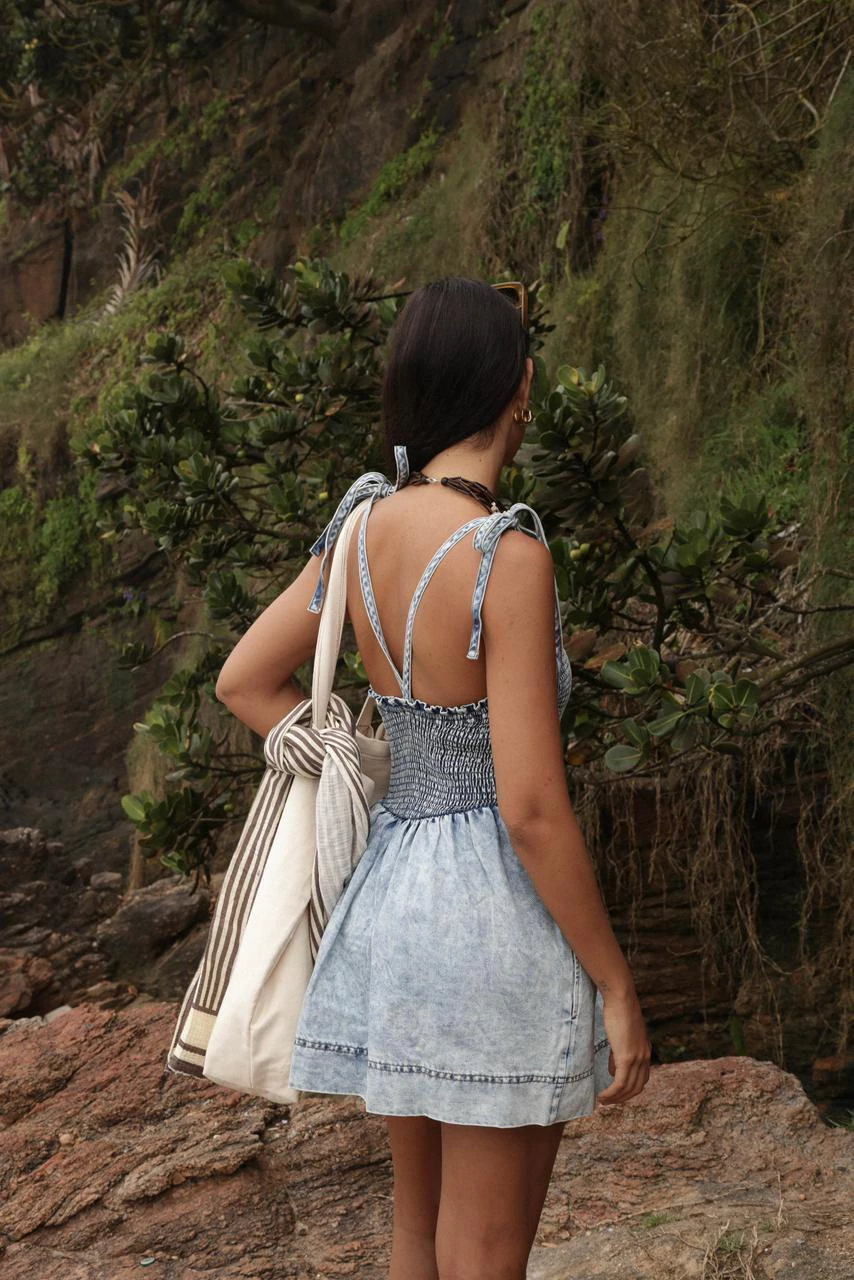 Vestido denim en punto smock con cintura vasca, versión corto. Decidimos que la espalda tenga un corte semicircular más bajo pensado para lograr un mejor calce y ajuste anatómico. Un ítem divino y versátil tanto para día como para noche. Con tiras para que lo puedas ajustar de forma personalizada, probá también esconderlas para adentro y hacerlo strapless!